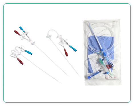 A Hemodialysis Catheter Kit is a sterile, pre-packaged set of medical tools used to insert a catheter for hemodialysis treatment. It typically includes a catheter, guidewire, dilator, introducer needle, and other essential components.
