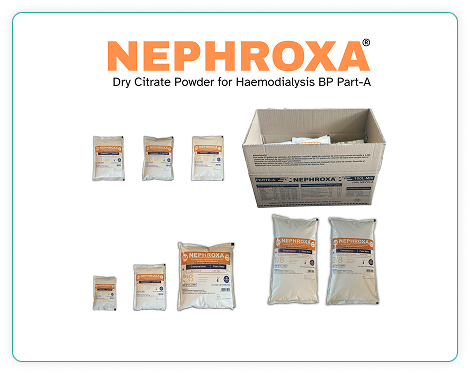 Nephroxa Dry Citrate Powder for Hemodialysis BP Part A is a highly effective hemodialysis concentrate designed for use in patients undergoing extracorporeal bicarbonate hemodialysis for both acute and chronic renal failure.
