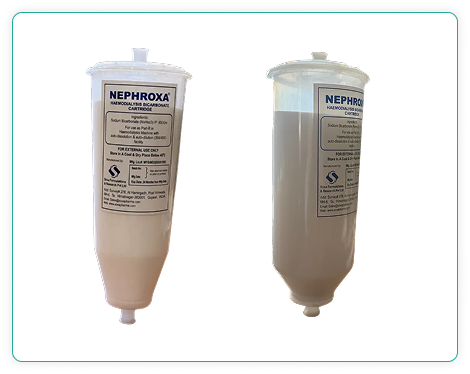 Nephroxa Bicarb Cartridge is a high-quality sodium bicarbonate cartridge designed for use with hemodialysis machines. Manufactured in an ISO 9001:2008 and ISO 13485:2003 certified facility, it ensures top-notch performance and reliability. Available size in 650g, 720g, 760g, and 900g.